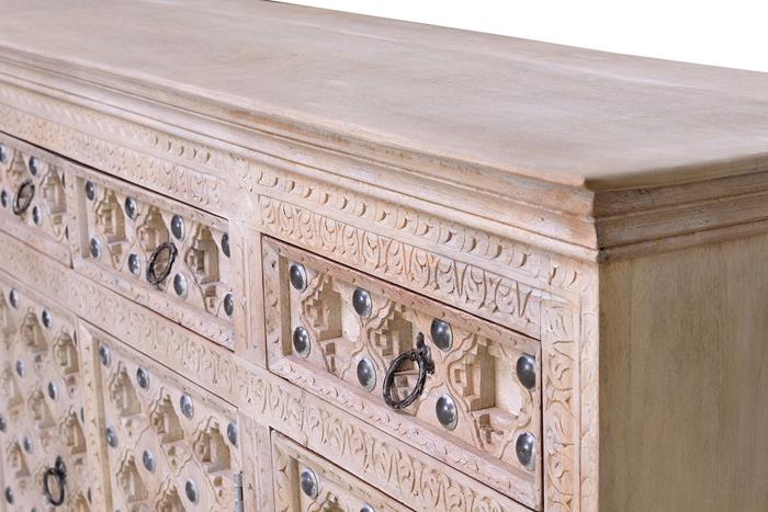 APARADOR EN MADERA DE MANGO MACIZO, CON 3 PUERTAS Y 3 CAJONES Y CON DETALLES EN BRONCE