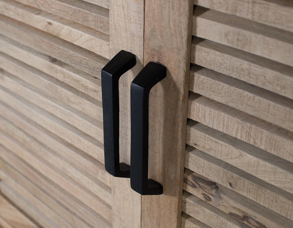 Aparador 4 puertas y fabricado en madera maciza de mango en color natural. Al ser madera matural puede venir con sus nudos y vetas originales.