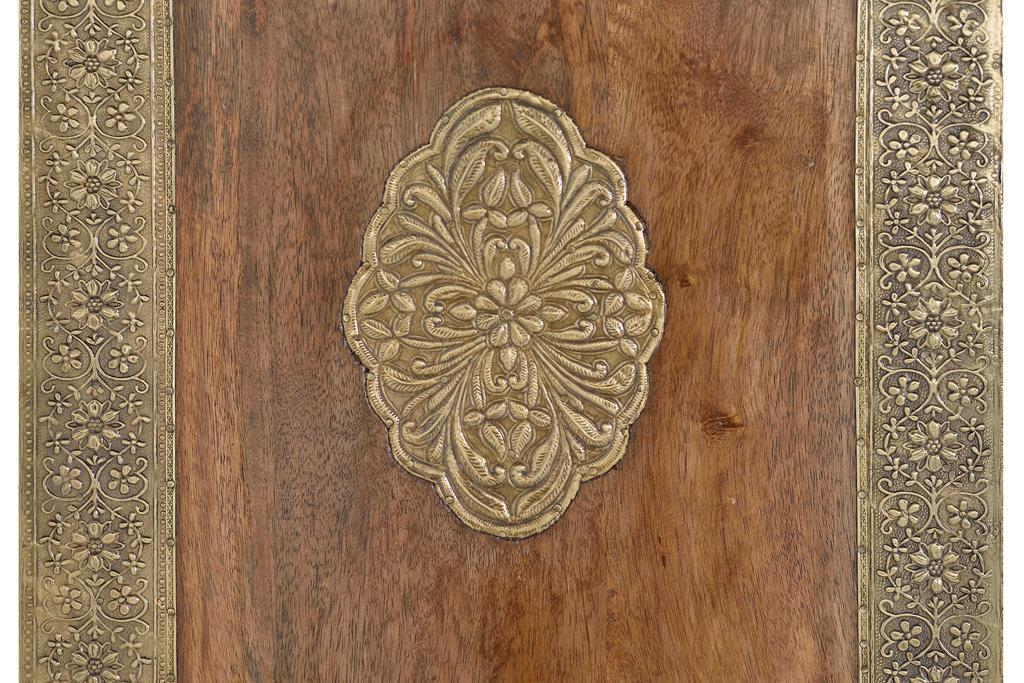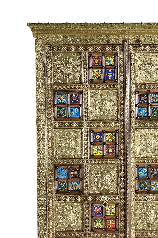 ARMARIO DE ESTILO ETHNICO EN MADERA DE ACACIA CON APLICACIONES EN AZULEJO Y BRONCE REPUJADO