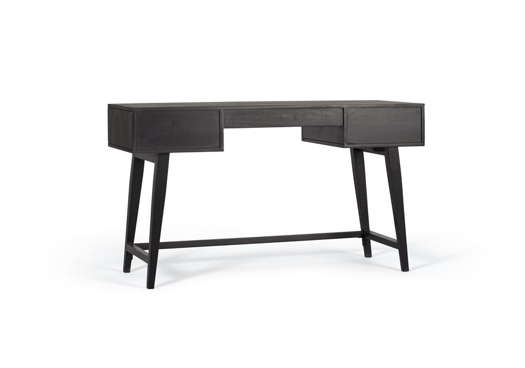 ESCRITORIO 3 CAJONES FABRICADO EN MADERA DE PALISANDRO Y MANGO, BASE DE METAL.