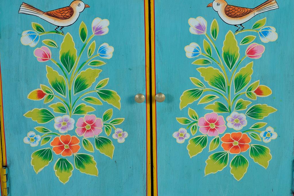 MUEBLE 2 PUERTAS, CON DETALLES PINTADOS A MANO.