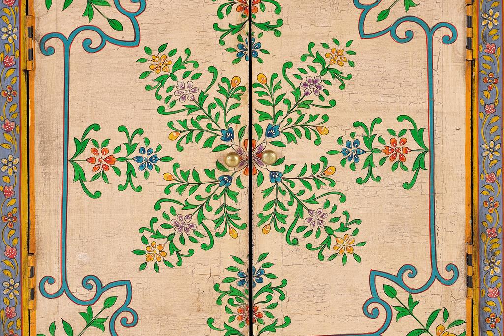 MUEBLE AUXILIAR 2 PUERTAS CON DETALLES PINTADOS A MANO.
