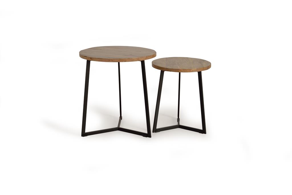SET DE 2 MESAS DE CENTRO CON TAPA DE MADERA Y BASE DE METAL.